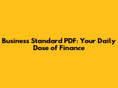 Business Standard PDF: Your Daily Dose Of Finance
