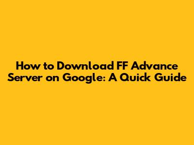 How To Download FF Advance Server On Google: A Quick Guide