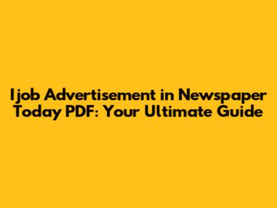 Ijob Advertisement In Newspaper Today PDF: Your Ultimate Guide