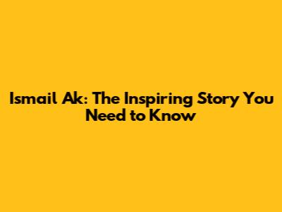 Ismail Ak: The Inspiring Story You Need To Know