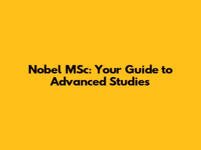 Nobel MSc: Your Guide To Advanced Studies