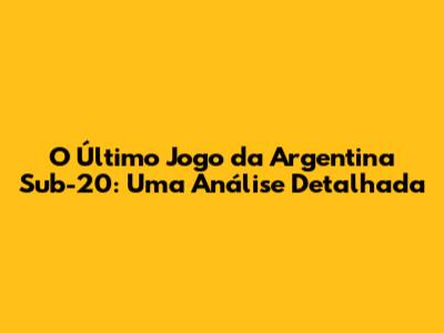 O Último Jogo Da Argentina Sub-20: Uma Análise Completa