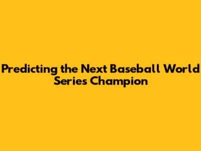Predicting The Next Baseball World Series Champion