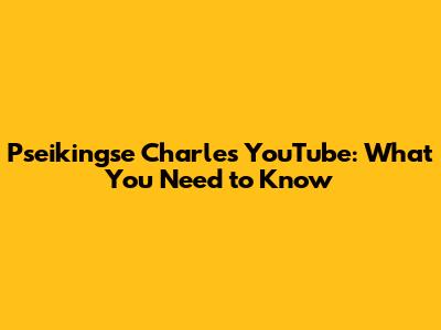 Pseikingse Charles YouTube: What You Need To Know