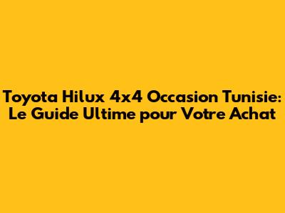Toyota Hilux 4x4 Occasion Tunisie: Guide Complet