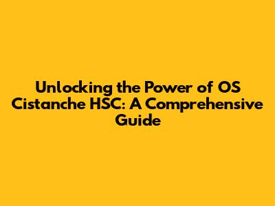 Unlocking The Power Of OS Cistanche HSC: A Comprehensive Guide