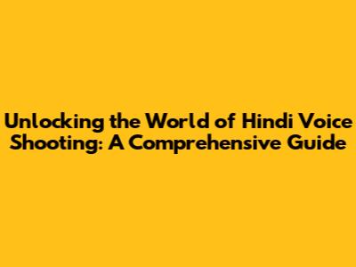 Unlocking The World Of Hindi Voice Shooting: A Comprehensive Guide