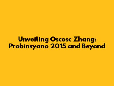 Unveiling Oscosc Zhang: Probinsyano 2015 And Beyond