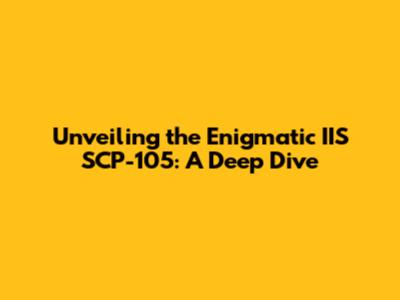 Unveiling The Enigmatic IIS SCP-105: A Deep Dive