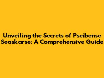 Unveiling The Secrets Of Pseibense Seaskarse: A Comprehensive Guide