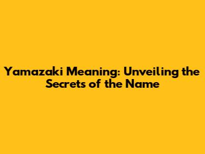 Yamazaki Meaning: Unveiling The Secrets Of The Name